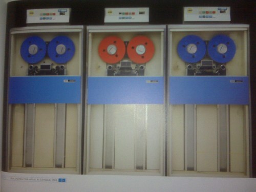 When I first started working in IT, 27 years ago, my first role was mainly to operate things like these 2401s. I only did it for a few months, but I can still feel every aspect of those tape drives. The sound of the door slamming, the way the vacuums sucked the tape down so it could move, the feel of those buttons, the whirring of tape moving back and forth. I got to the point I could tell which type of program was using the tape based on the behavior of the tape (barely moving, spinning like mad, constantly going back and forth). Data made visible.