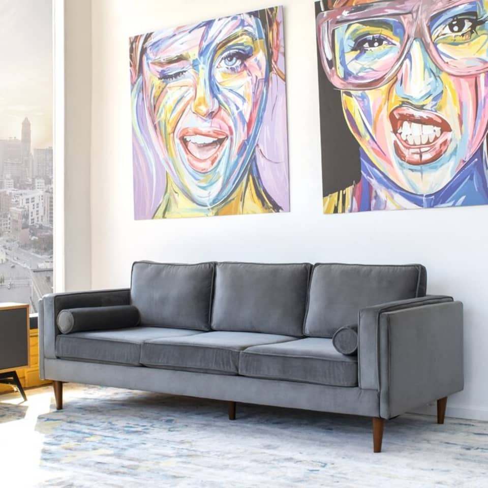 It may be fun to get a bright coloured or black sofa, at first. In the long run, gray is the best choice.